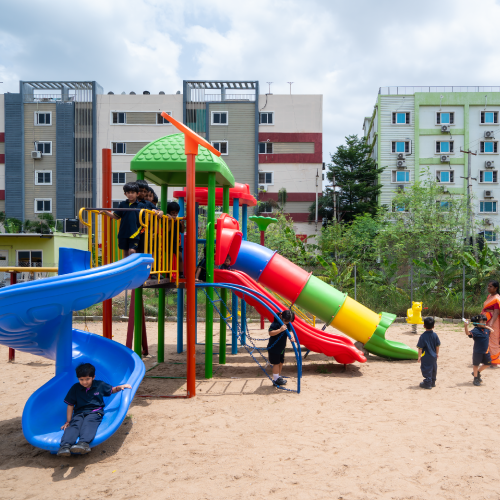 Located in Poranki, Vijayawada, our Visionary Vista Campus spans 68,400 sq. ft. and features two expansive playgrounds measuring 1.5 acres and 2 acres, respectively.